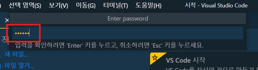 왼쪽 하단의 >< 표시를 누르거나 키보드의 F1 키를 누르고 SSH를 검색하여 설정 파일 열기 메뉴를 클릭합니다.