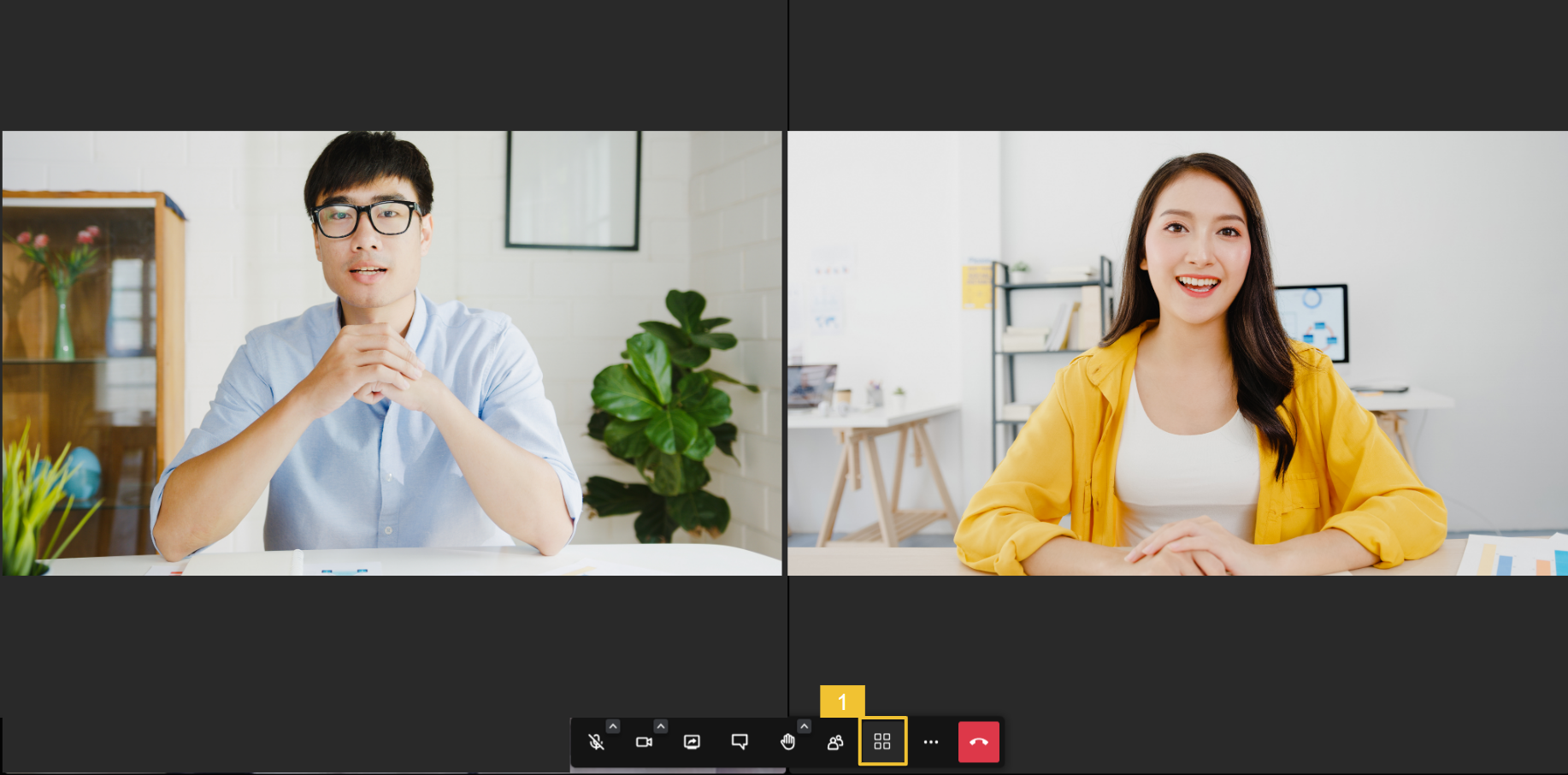 * 타일뷰 전환을 통해   화상회의 참여자들의 화면을 일괄적으로 볼 수 있는 기능입니다.