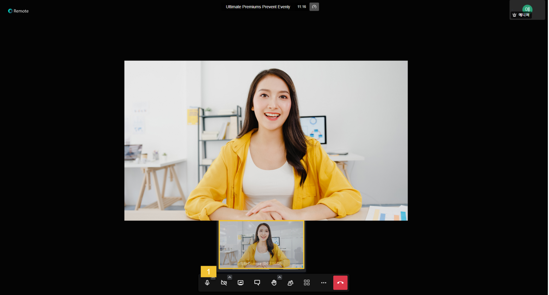 * **화면 숨김**  : 화살표를 클릭하면 self view를 숨길 수 있습니다.