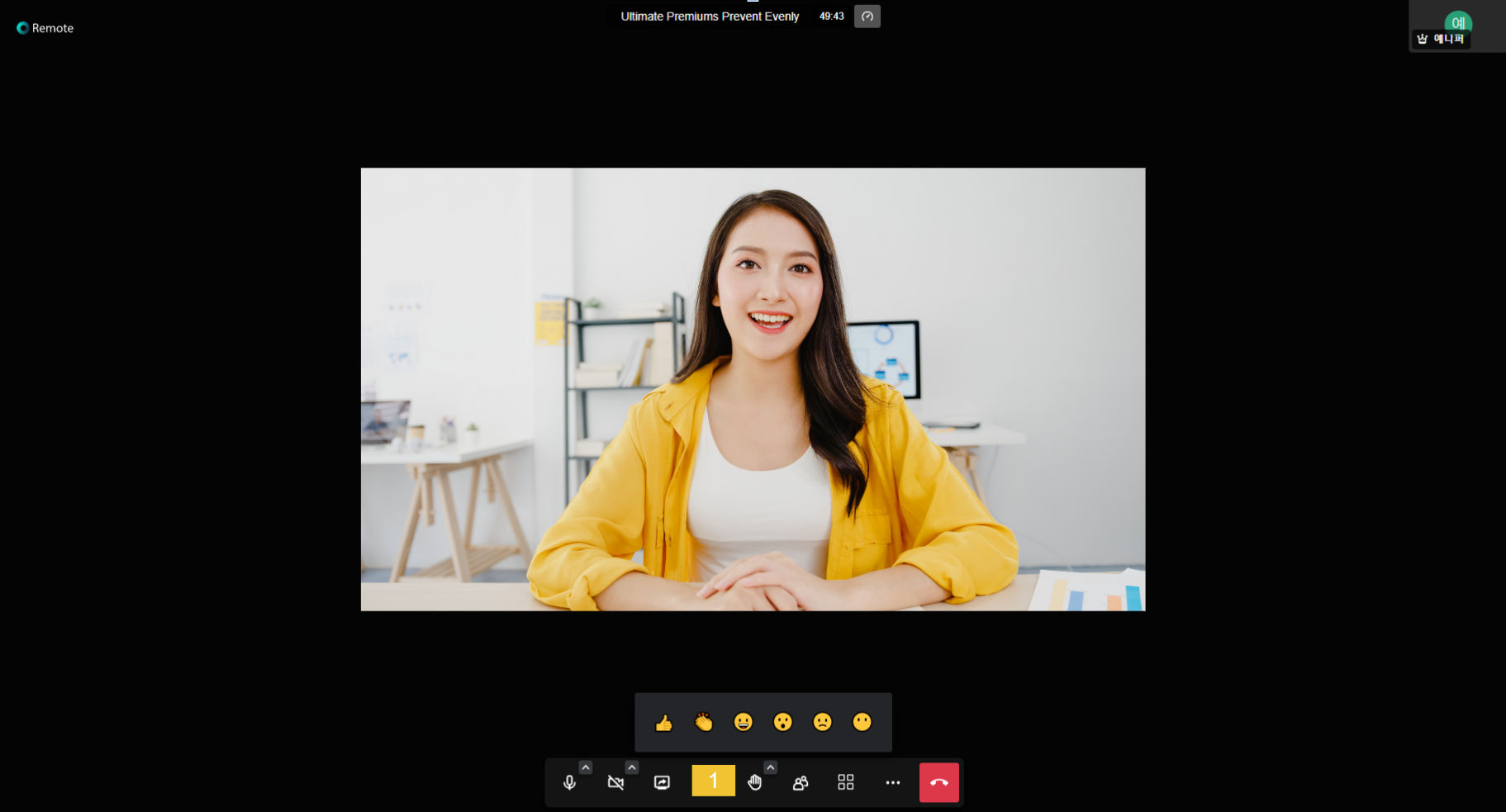 * **회의 정보 :** 화면 상단에는 회의명과 회의 시간이 표시됩니다.&#x20;