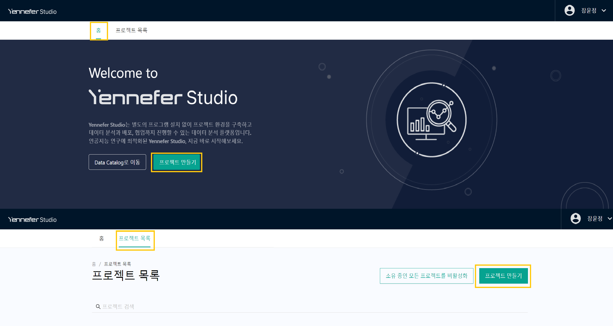 * Studio 에서 프로젝트 만들기 버튼을 클릭하세요.