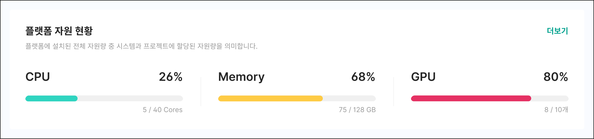 * 더보기 버튼을 클릭하면 플랫폼 자원 현황에 대한 상세 페이지로 이동합니다.