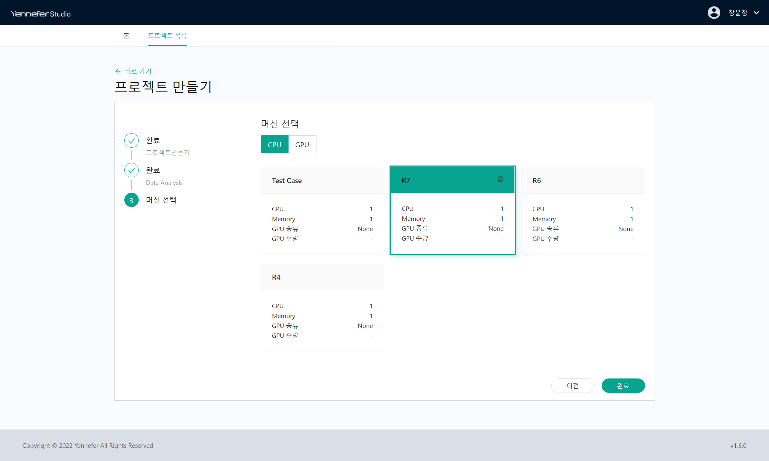 * 마지막으로 사용할 머신을 선택하면 SSH 프로젝트를 생성 할 수 있습니다.