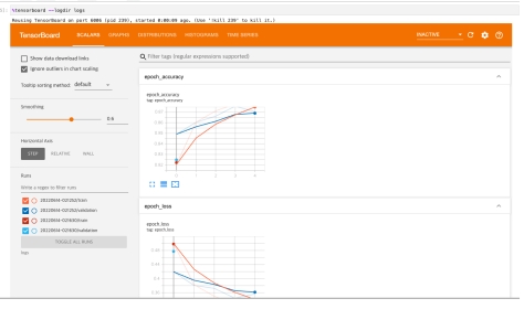 8. 학습 시 logdir와 tensorboard_callback변수를 추가하여야 합니다. (참고 코드 : https://www.tensorflow.org/tensorboard/tensorboard_in_noteb ooks)