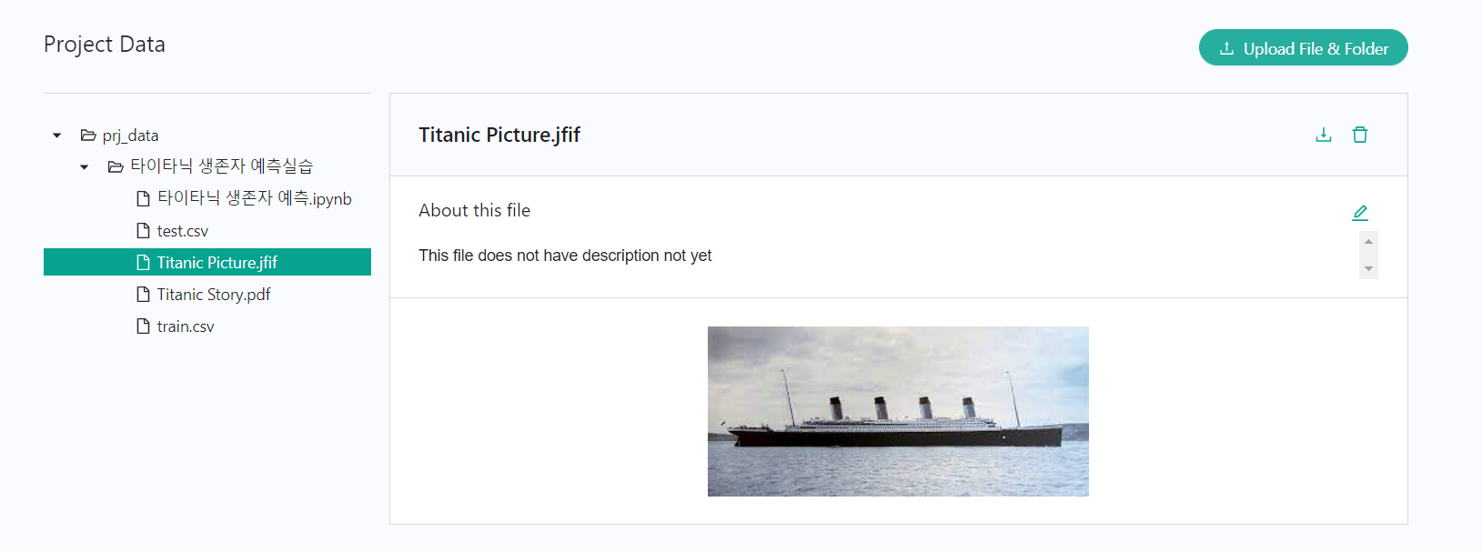 * In the prj\_data folder, you can check **the data uploaded to the project data.**