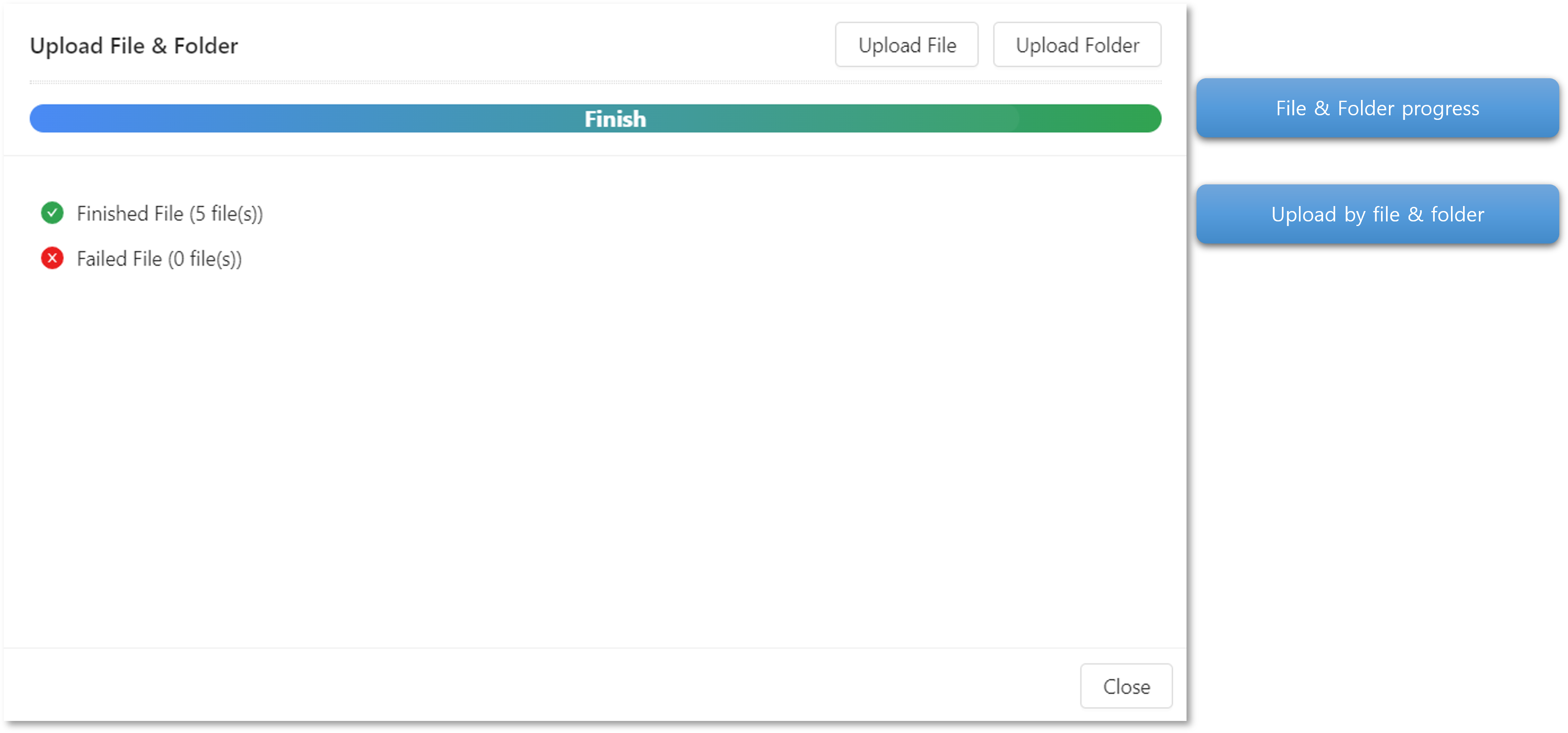* You can check the progress of individual file and folder uploads, and if you want to pause or cancel, you can click a button to process it.