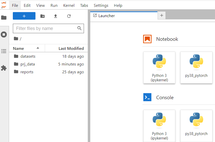 <figure><img src="https://612292586-files.gitbook.io/~/files/v0/b/gitbook-x-prod.appspot.com/o/spaces%2FstSX6fpES491F1pGCECr%2Fuploads%2FvaRrGVacGBYwVo6qzfOL%2F%EC%A3%BC%ED%94%BC%ED%84%B0.PNG?alt=media&#x26;token=24fb86b9-2368-4cc6-a984-8f8a4353bff7" alt=""><figcaption><p>서버 실행하기 후 Jupyter Lab 화</p></figcaption></figure>