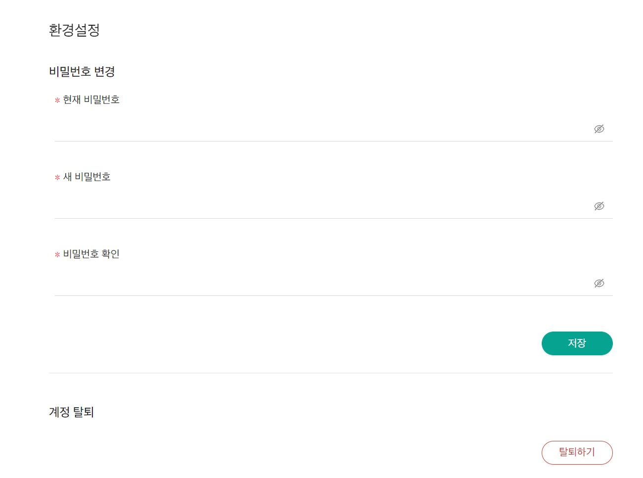 "저장" 버튼을 클릭하면 비밀번호 변경이 완료됩니다.