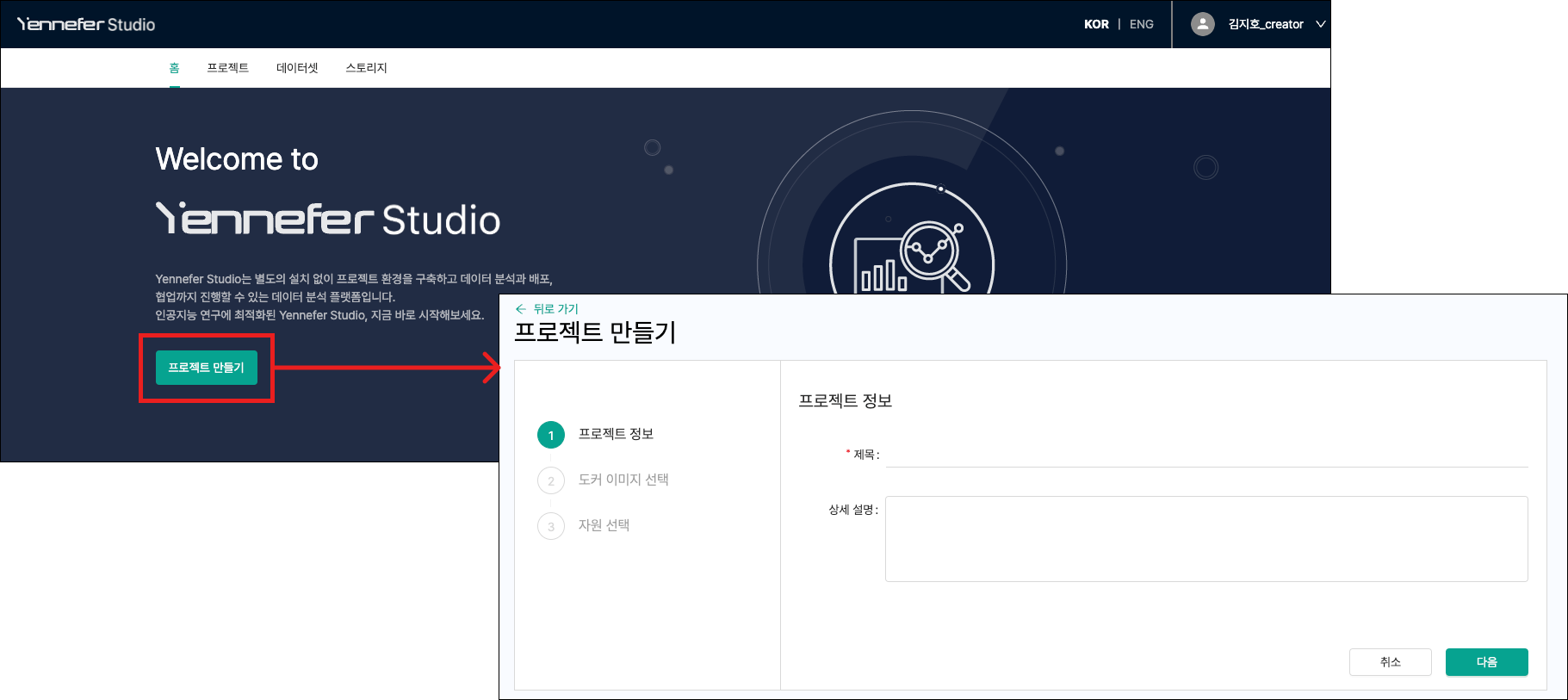 * **'프로젝트 만들기'** 버튼을 클릭하시면, 새 프로젝트 만들기 화면으로 이동합니다.    &#x20;
