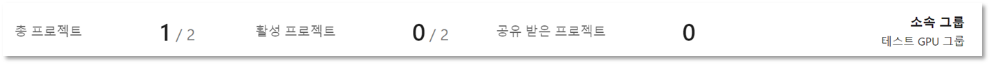 * **활성 프로젝트** : 현재 활성화 된 나의 프로젝트 수 / 소속 그룹에서 지정한 한 명당 **최대 활성 프로젝트 수**