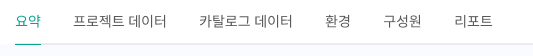 프로젝트 메뉴는 **요약, 프로젝트 데이터, 카탈로그 데이터, 환경, 구성원, 리포트**로 구성되어있습니다.